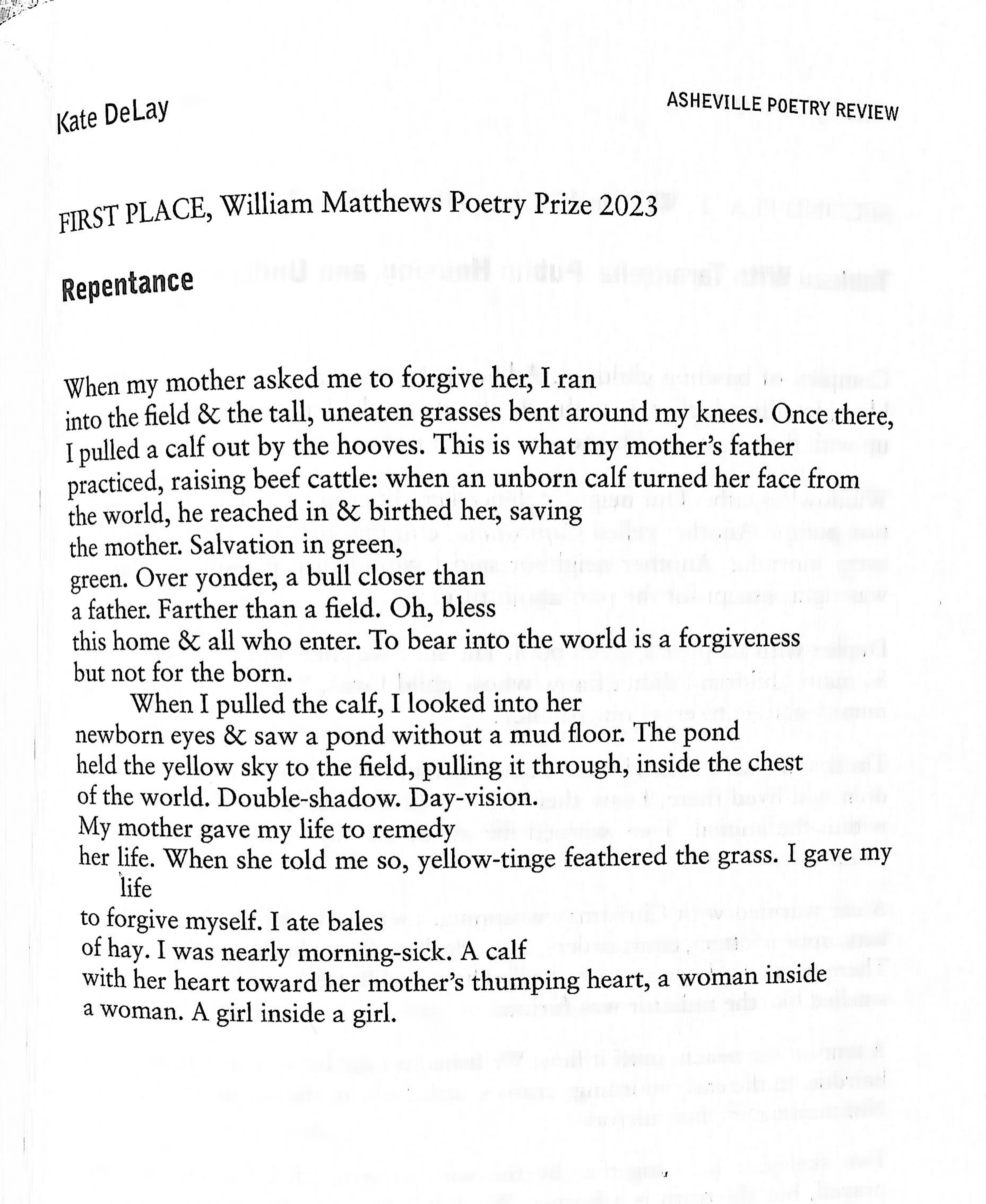 - Winner of the 2023 William Matthews Poetry Prize, selected by Diane Seuss